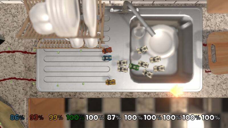 这款游戏并非以到达终点线为目的。在这个生存竞赛游戏里,挑战在于留在由常见日常物品搭建的、围绕房屋的混乱微型轨道上。最多四名朋友可在本地多人游戏中合作或竞争,能在父母不允许设置的赛道上驾驶迷你钢筋混凝土赛车比赛。