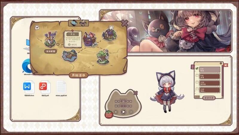 游戏以放置养成+互动收集为核心,玩家可通过点击、拖拽等方式与小猫娘实时互动,例如喂食、抚摸、清洁等,这些操作会影响她的情绪和状态。此外,玩家可安排小猫娘进行钓鱼、烹饪、战斗等任务,每个活动均对应超过100种收集要素,解锁后可装饰房间或提升角色能力。游戏还融合实用工具功能,内置番茄钟、便签和日记系统,帮助玩家规划时间并记录日常。通过Steam创意工坊,玩家可自定义角色外观、动画及剧情文本,甚至与其他玩家分享原创内容。