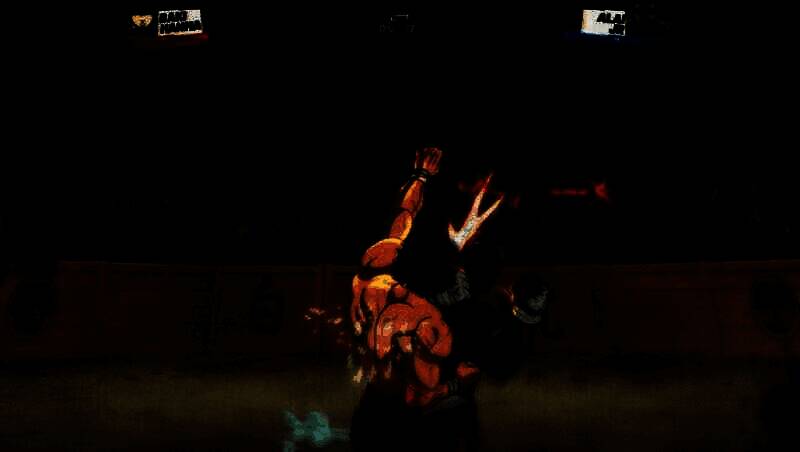 从角色招式到场景设计均忠实于原作,如地下斗技场的铁丝网擂台、武道大会的日式庭院等场景细节均精细呈现。战斗中穿插的动画分镜式特写(如骨骼碎裂的X光特效),进一步强化了“暴力美学”的视觉冲击。