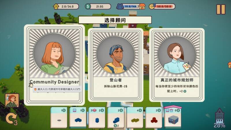 游戏运用类似俄罗斯方块的“城镇叠叠乐”玩法,建筑以方块形式呈现。玩家需依据形状和功能,有策略地放置和堆叠方块来分配建筑,比如合理安排住宅、公司和公共服务建筑的位置。
