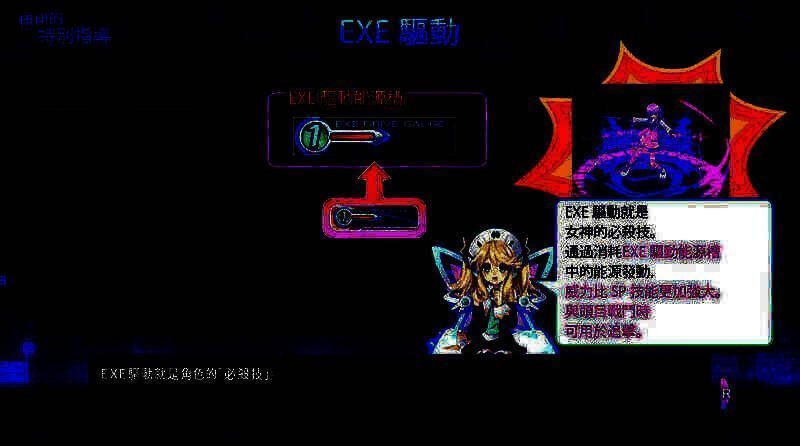 游戏采用回合制战斗模式,敌我双方按回合命令轮候表依次行动。玩家能操控角色进行SP技能释放、EXE drive操作、普通攻击、防守以及随机选择等。每个角色都有血量槽(HP)和技能槽(SP),合理运用技能与攻击方式是取胜关键。